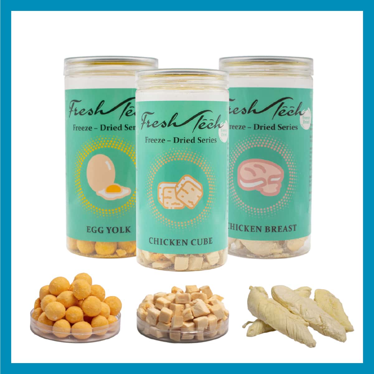 Fresh Tech Freeze-Dried Series Dog Treats 3-in-1 Bundle (Chicken Breast, Cube, Egg Yolk Flavour) [3 Items + FREE GIFT]