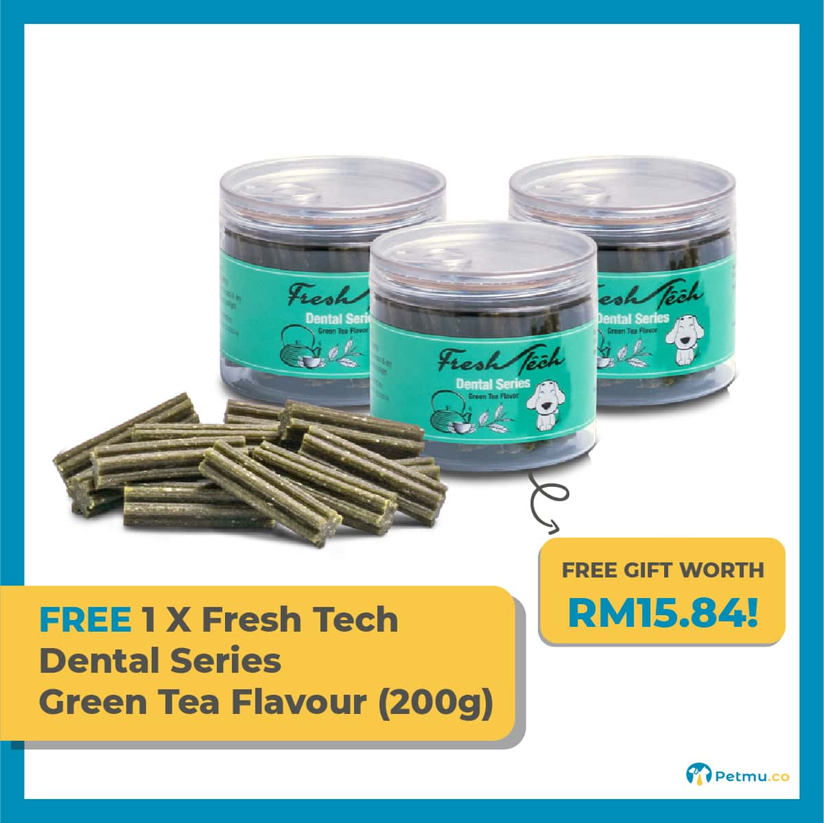 Fresh Tech Freeze-Dried Series is one of the best dog treats in the market. Now come in a special 3-in-1 mega bundle to satisfy your lovely dog partner. Made with Fresh Chicken Cube, this dog treat will surely make your dogs instantly fall in love with it! The bundle consists of 3 different Fresh Tech Freeze-Dried Series products, Fresh Egg Yolk, Fresh Chicken Cube, and Fresh Chicken Breast, each of which will surely be a tasty feast for your dogs! Buy 1 now and watch your dog enjoy the treats! And now come with a FREE Fresh Tech Dental Stick Series – Green Tea Flavour which is worth RM15.84! Grab one now before it ran out!